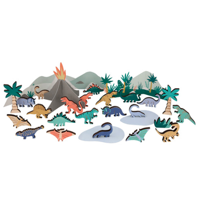 Nouveauté chez little&tall : la marque Meri Meri. Les enfants qui adorent les dinosaures vont être ravis de recevoir ce cadeau, un magnifique calendrier de l'avent remplie de dinosaures à découvrir quotidiennement ! Il contient des dinosaures en bois aux couleurs vives et le feuillage, et une scène en carton. Convient aux 8 ans et plus. Fait en papier écologique