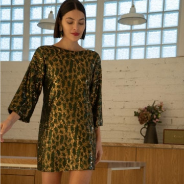 Robe Nine - paillettes léopard vert - la sélection little&tall