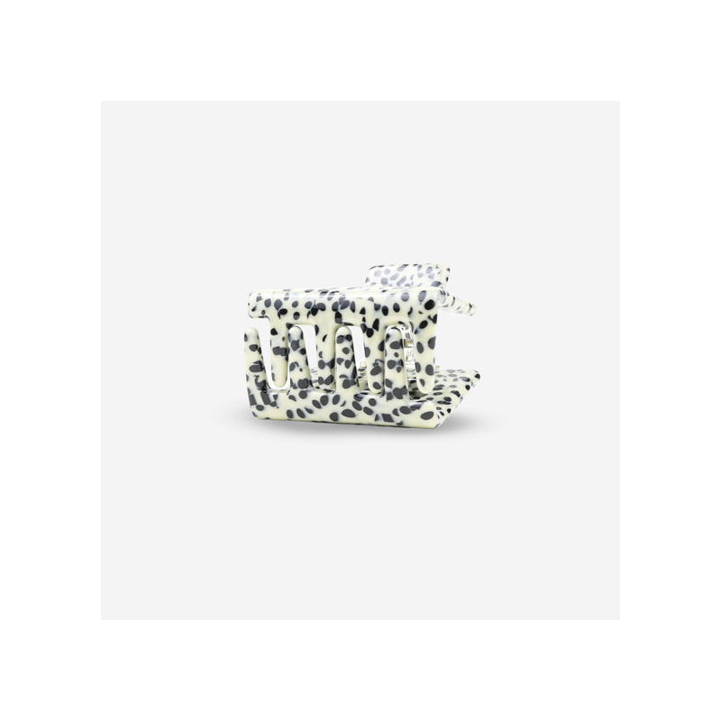 On adore la pince Lib de chez Sasstie. Elle a une forme confortable qui permet d'accrocher la moitié de vos cheveux. On craque pour son imprimé à pois noir et blanc.