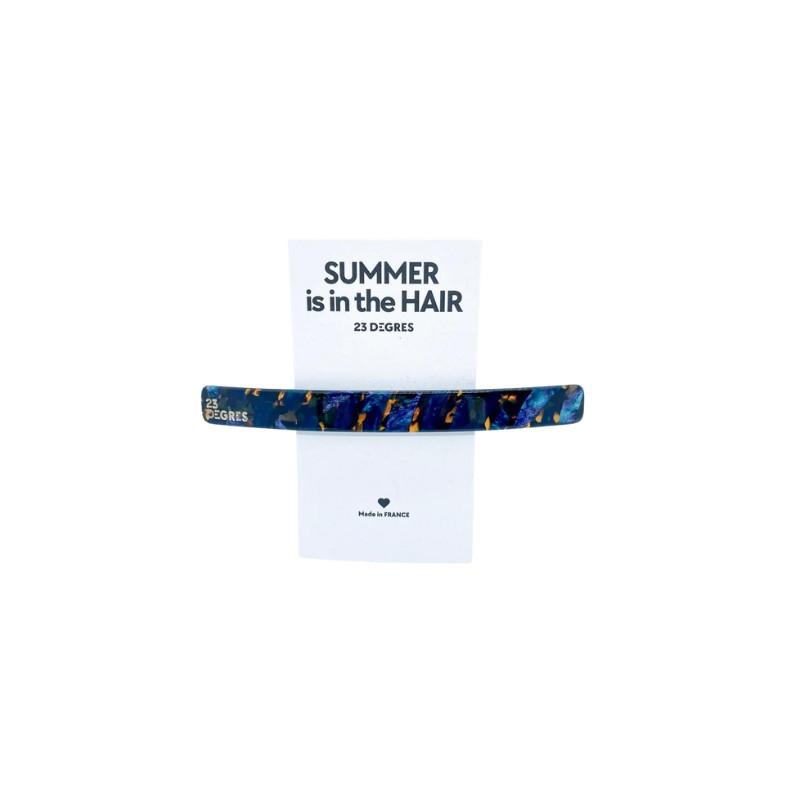 Découvrez la barrette à cheveux bâton coloris "sunny bleu" de la marque 23 Degrés. Elle maintient les mèches de cheveux en place tout en douceur, sans agresser votre cuir chevelu. Cette barrette est conçue en acétate de cellulose, une fibre végétale solide et durable dérivée du coton et du bois. Adaptée à tous les types de cheveux. Toutes les pinces & barrettes 23 Degrés sont fabriquées à la main en France, dans le Jura.