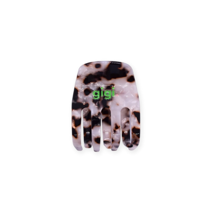 Cette pince en écaille est conçue en acétate de cellulose. Sa forme convient aux cheveux assez épais et longs. Elle s'adapte en chignon spontané ou en demi-queue. L'empreinte gigi sur chaque pince est débossée et peinte à la main dans un atelier. Pour préserver votre jolie pince, évitez le contact avec l'eau, préférez un nettoyage avec une microfibre.