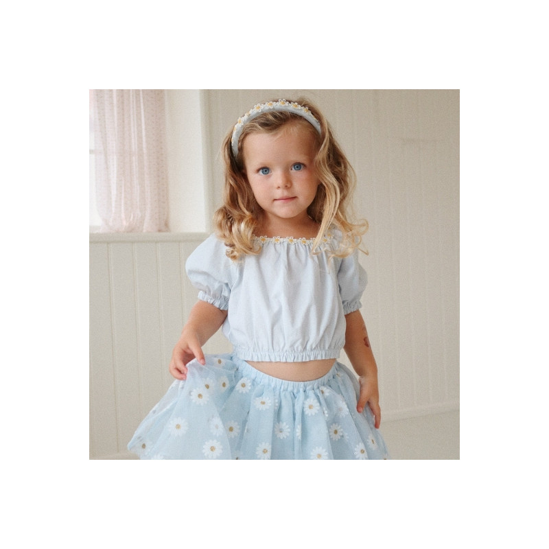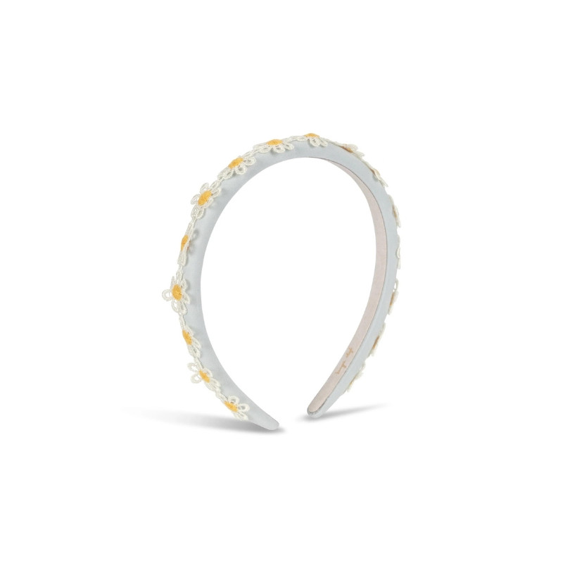 Craquez pour ce joli serre-tête aux couleurs du motif "plein air" de la marque Konges Slojd. Son colori bleu ciel et ses marguerites de dentelle s'associeront à n'importe quelle tenue, en créant un look frais et printanier. Sa taille unique conviendra dès 3 l'âge ans.