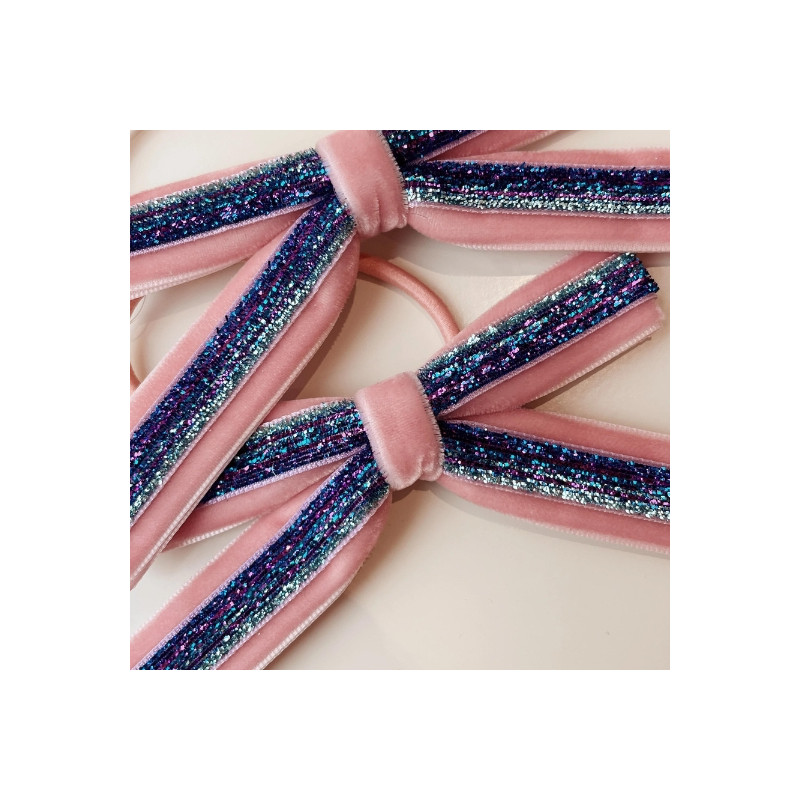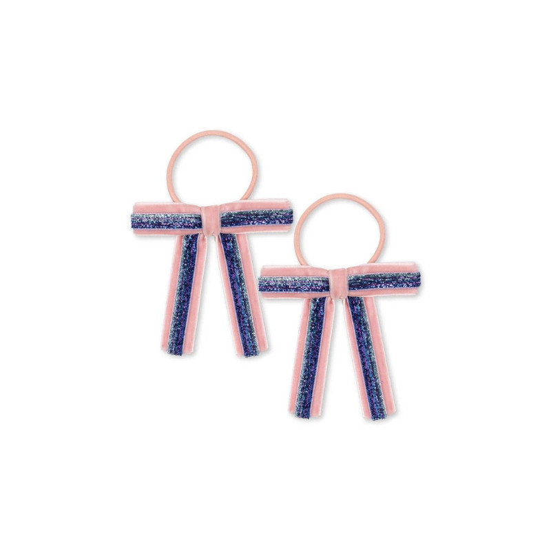 Envie d'ajouter une touche de magie à chaque coiffure ? Voici les élastiques en velours mellow rose de la marque Konges Slojd, l’accessoire parfait pour les petites fashionistas ! Avec leurs jolis nœuds en velours tout doux et leurs paillettes subtiles, ils sont le combo idéal pour transformer chaque look en une véritable œuvre d’art capillaire !
