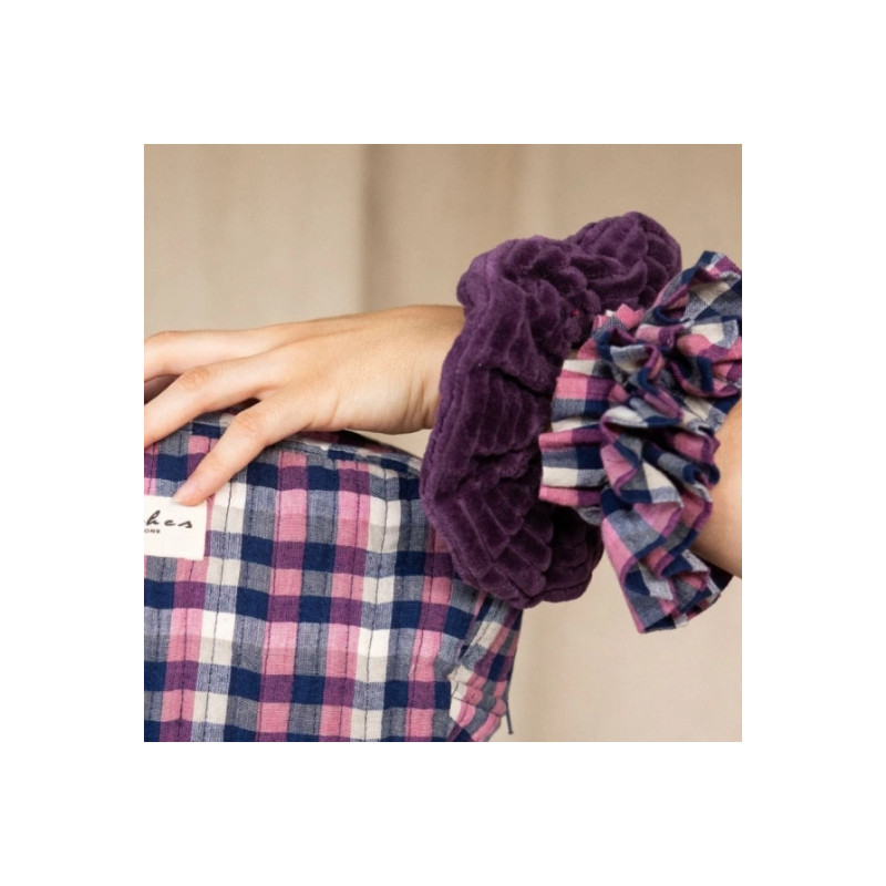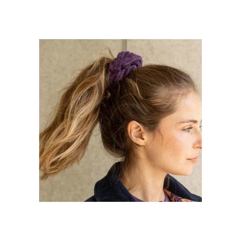 Le Big chouchou manju de chez Apaches Collections en velours côtelé deep purple apporte une touche élégante et tendance à vos coiffures ou à votre poignet.