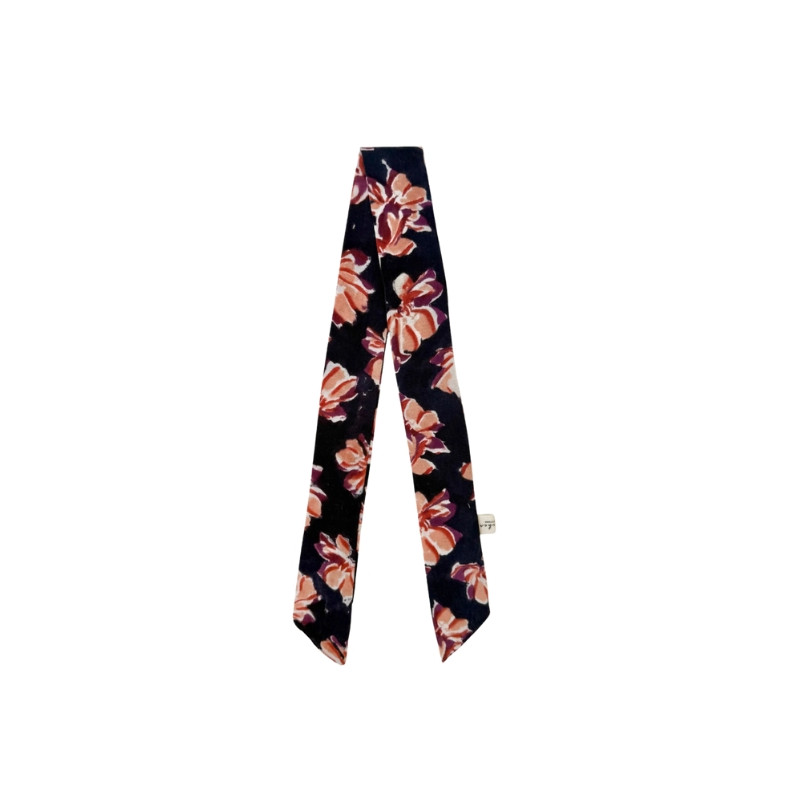 Le ruban Nisha VIOLETA de Apaches Collections séduit par son imprimé floral raffiné. Léger et polyvalent, il se noue dans les cheveux ou autour du cou pour une touche élégante et féminine au quotidien.