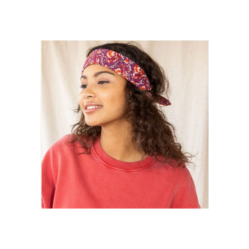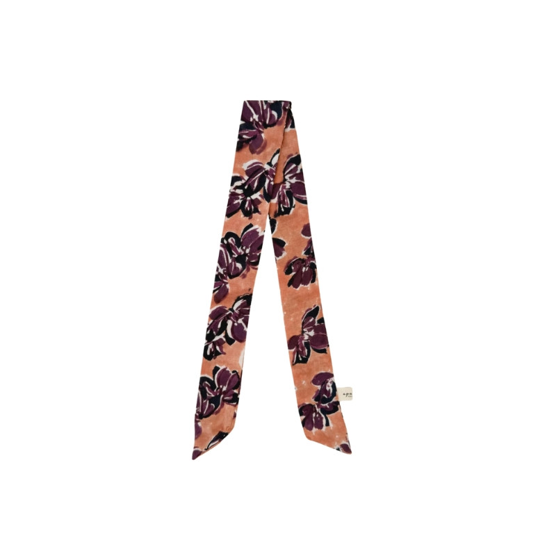 Le ruban Nisha CAMEL de Apaches Collections séduit par son imprimé floral chaud. Léger et polyvalent, il se porte dans les cheveux ou autour du cou pour une touche élégante au quotidien.