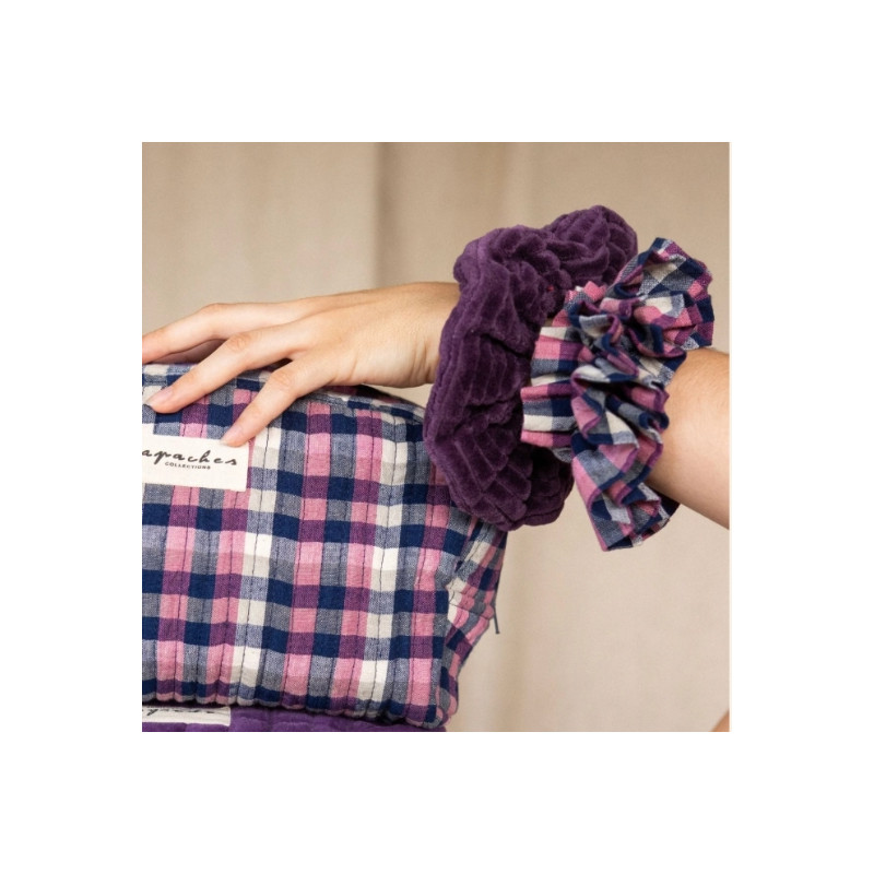 Le big chouchou Manju Violeta rust camel de Apaches Collections, en coton, séduit par son imprimé floral chaleureux et s’adapte aussi bien aux cheveux qu’au poignet.