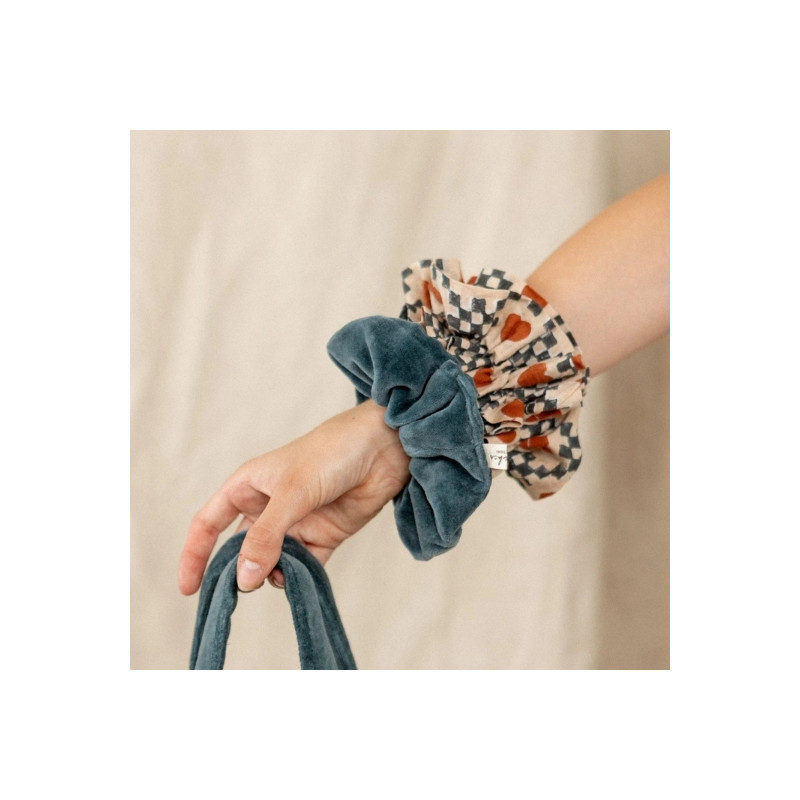 Le chouchou Manju de la marque Apaches Collections apporte une touche bohème et colorée à vos coiffures. Confectionné en coton doux, il séduit par son imprimé cœur graphique et ses teintes chaudes et lumineuses. À la fois pratique et délicatement rétro, il s’enroule facilement autour d’un chignon ou d’une queue-de-cheval pour un look plein de charme.