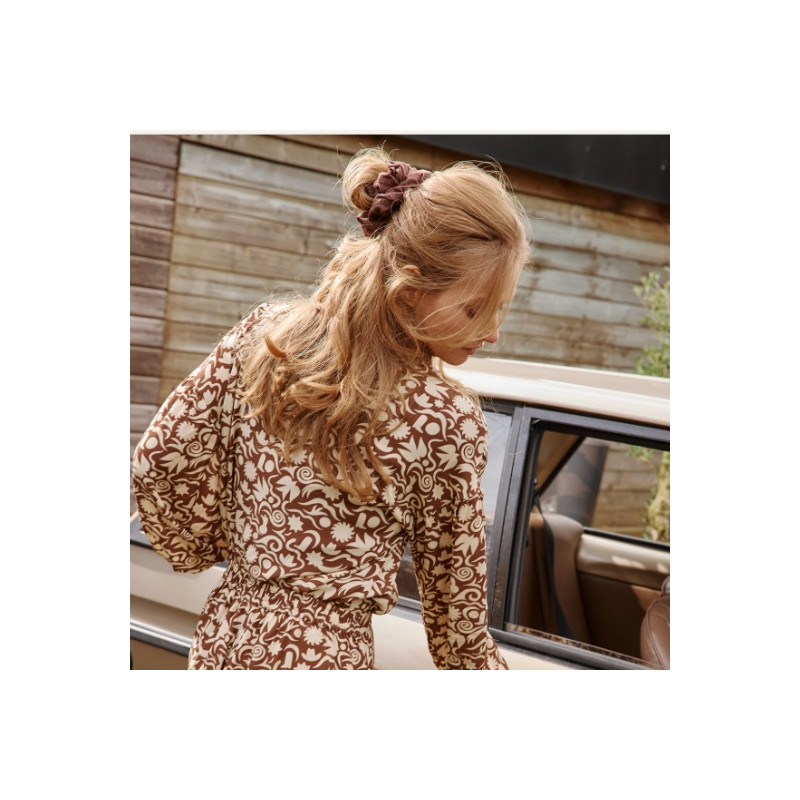Le chouchou CHANHA Cocoon Chocolat d’Apaches Collections séduit par ses teintes chocolat profondes et son imprimé naturel tout en finesse. Son format XXL apporte du volume aux coiffures et crée un effet élégant sans effort. Confectionné dans une matière douce, il se porte confortablement au quotidien sans abîmer les cheveux. À la fois chic et ludique, il est parfait pour apporter une touche chaleureuse et stylée à toutes vos coiffures.