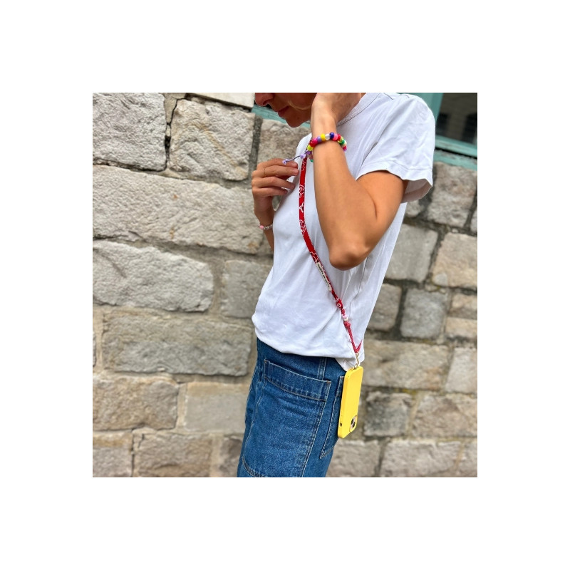 Ce porte téléphone en tissu bandana allie praticité et style avec beaucoup de simplicité. Confectionné en coton, il se distingue par ses motifs emblématiques et ses couleurs vibrantes qui apportent une vraie touche de caractère. Son cordon ajustable permet de le porter facilement en bandoulière et de l’adapter à toutes les morphologies. Idéal pour garder son téléphone à portée de main, il accompagne aussi bien les sorties du quotidien que les balades ou les voyages. Compatible avec tout type de coque, il devient vite un accessoire aussi utile que tendance.