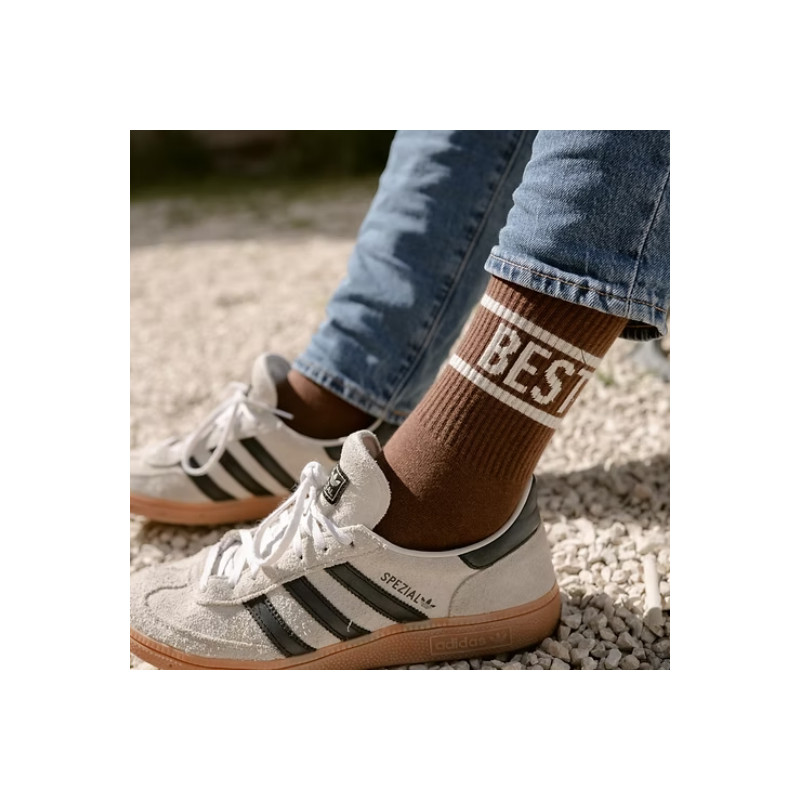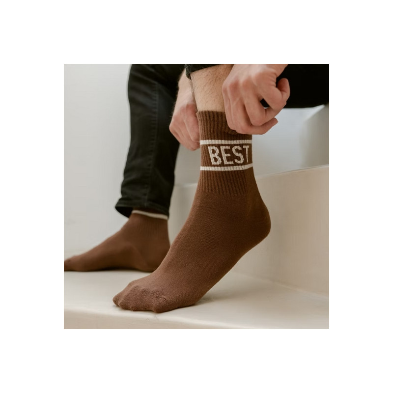 Les chaussettes Best dad de chez Mon petit Léon sont en 100 % coton et offrent un confort optimal. Taille unique 40/45, parfaites pour un look décontracté et stylé.