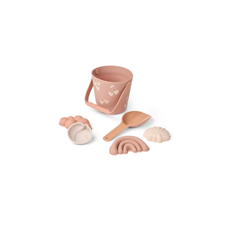 | COMPOSITION | Comprend : 1 seau en silicone souple, 1 pelle et 4 moules à sable |