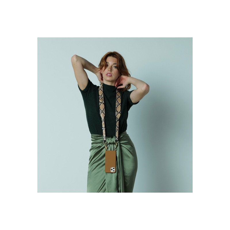 Ne cherchez plus votre téléphone au fond de votre sac et ayez le à portée de main avec la anse Nora python "La coque Française". Cette anse de téléphone conçue en cuir vegan est idéale pour garder les mains libres tout en faisant autre chose. Elle se porte en bandoulière. Cette anse mesure 120 cm. Coup de coeur little&tall : la tendance imprimé animalier.