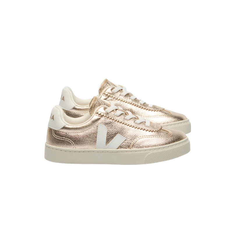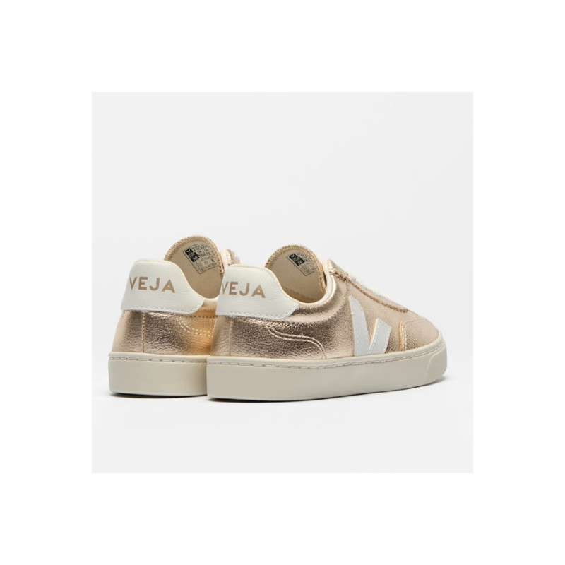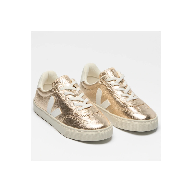 Baskets Volley enfant Veja coloris Platine White, en cuir avec lacets élastiques. Un modèle iconique, pratique et confortable pour tous les jours.