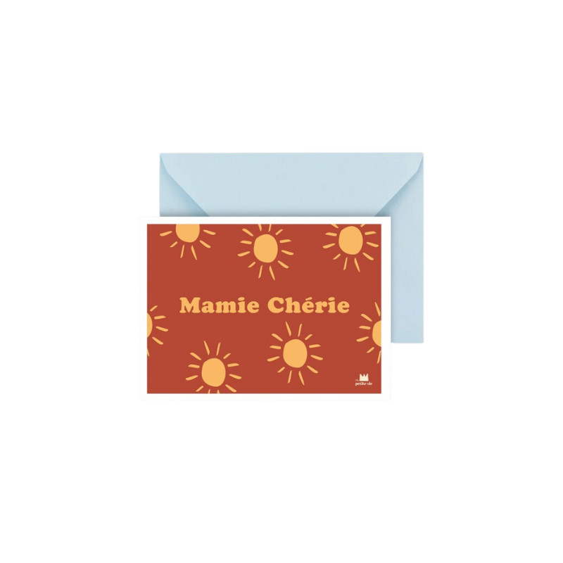 Envoyez à votre mamie un petit mot d’amour sur cette jolie carte Mamie Chérie de la marque Ma Petite Vie. Succès garanti ! Cette carte 10,5 x 15 cm est vendue emballée avec son enveloppe colorée. Toutes les cartes sont imaginées et imprimées dans leur atelier situé à Roubaix dans les Hauts-de-France.