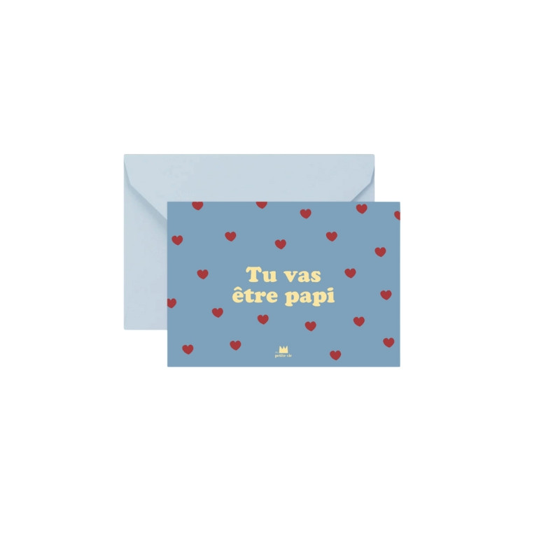 Découvrez la carte "tu vas être papi" de la marque Ma Petite Vie, spécialement conçue pour annoncer la merveilleuse nouvelle aux futurs papis d’amour!  Avec cette carte, vous pouvez partager avec tendresse et émotion la joie de l'arrivée imminente d'un nouveau membre dans la famille. Offerte dans une enveloppe élégante, elle ajoute une touche de suspense et de bonheur à ce moment spécial. Tous les produits Ma Petite Vie sont imaginés et imprimés dans leur atelier à Roubaix dans les Hauts-de-France.