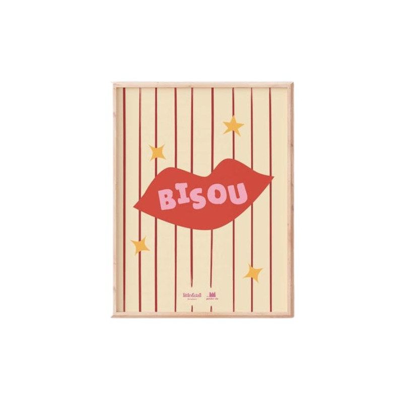 Une affiche pleine de tendresse et de pep’s, imaginée par Ma petite vie x Little&tall. Avec son message "Bisou" et son design rétro, elle ajoute une touche d’amour et de couleur à votre déco. Fabriquée en France.