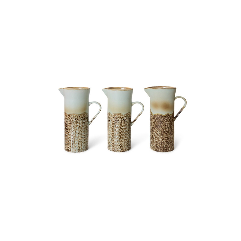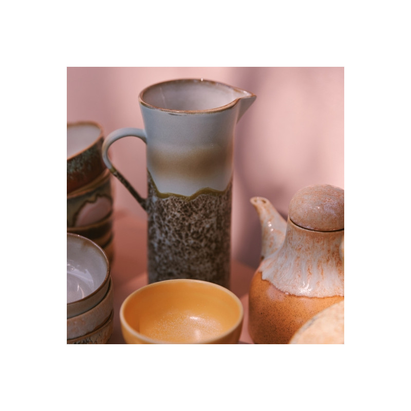 Cette cruche HKliving est un hommage aux années 70, avec une finition qui évoque la texture brute des côtes et un design minimaliste mais audacieux. L’alliage parfait entre l’esprit vintage et la fraîcheur contemporaine pour donner du cachet à vos moments de convivialité.