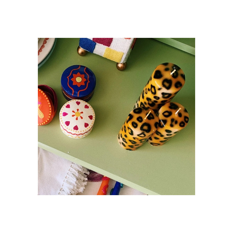 La bougie pilier courte à imprimé léopard est une pièce audacieuse qui apporte instantanément du caractère à votre intérieur. Son motif animal, à la fois ludique et décalé, en fait un véritable objet décoratif capable de dynamiser une étagère, une table ou une cheminée. Allumée ou simplement exposée, elle s’impose comme un accent original et tendance, parfait pour personnaliser votre décoration.