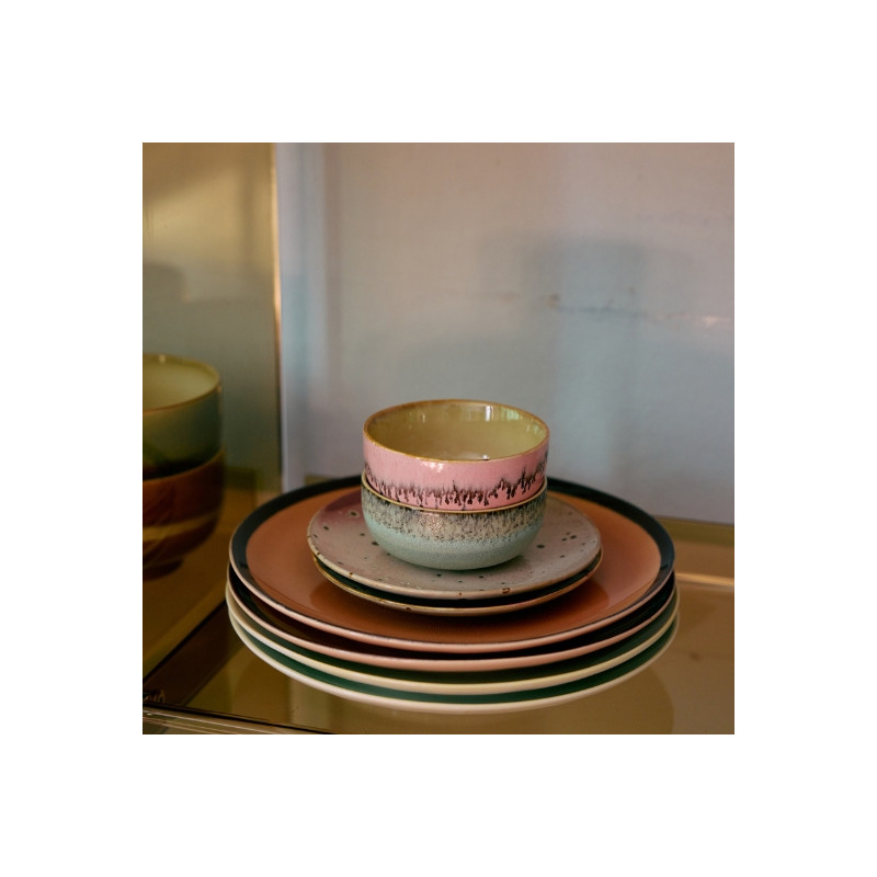 Ce lot de 4 bols à tapas s’inscrit dans la nouvelle collection de céramiques des années 70 de chez HK Living, inspirée par des décennies d’art : pop art, surréalisme, expressionnisme et formes abstraites. Chaque bol révèle des émaux texturés et des finitions audacieuses, offrant un style à la fois créatif et raffiné.