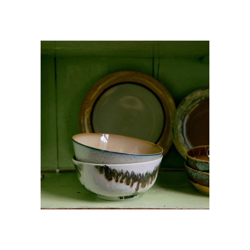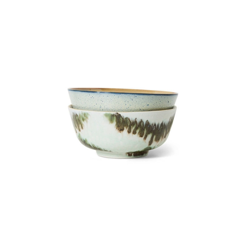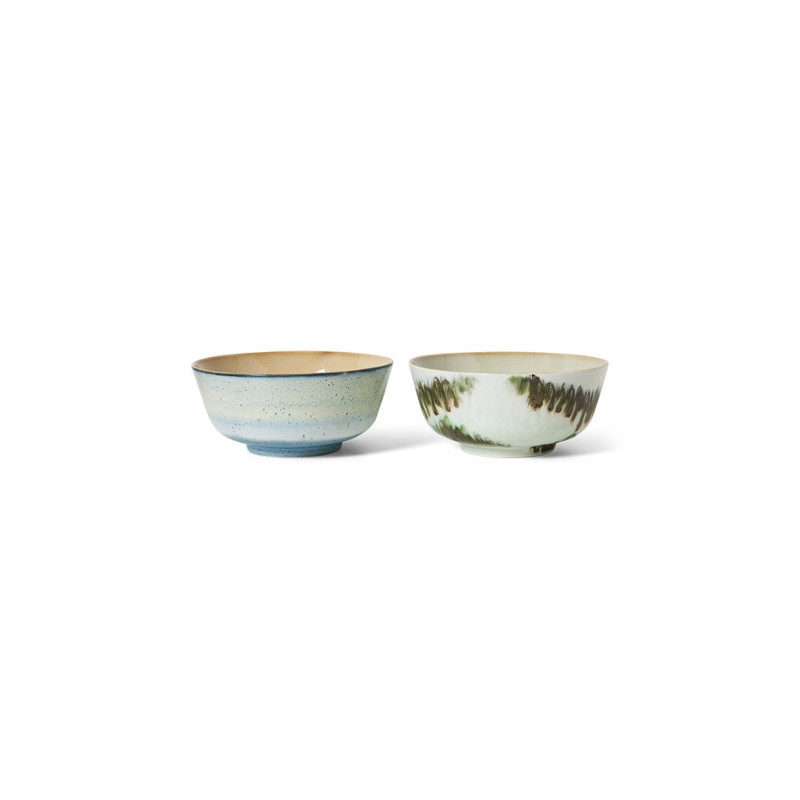 Lot de 2 bols à ramen issus de la collection 70's de chez HKliving, une ligne inspirée par des décennies d’art : pop art, surréalisme, expressionnisme et abstractions colorées. Chaque bol présente des émaux texturés et des finitions audacieuses, rendant chaque pièce unique et expressive.