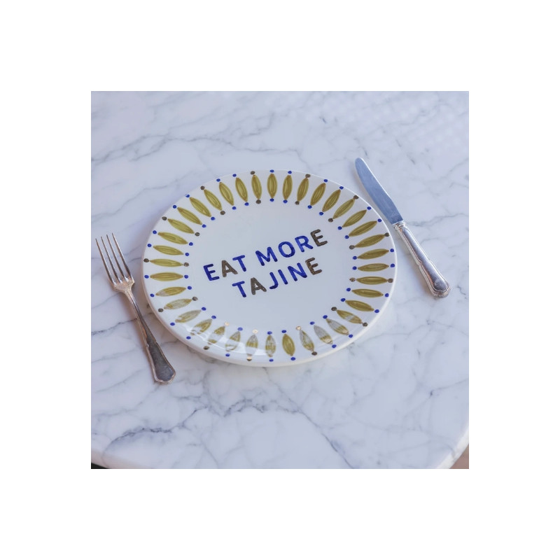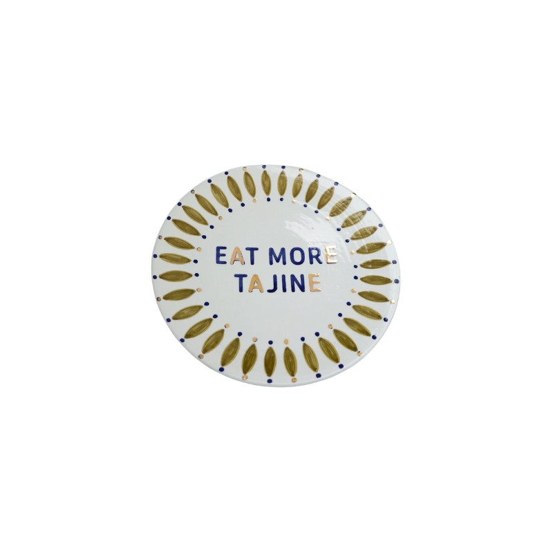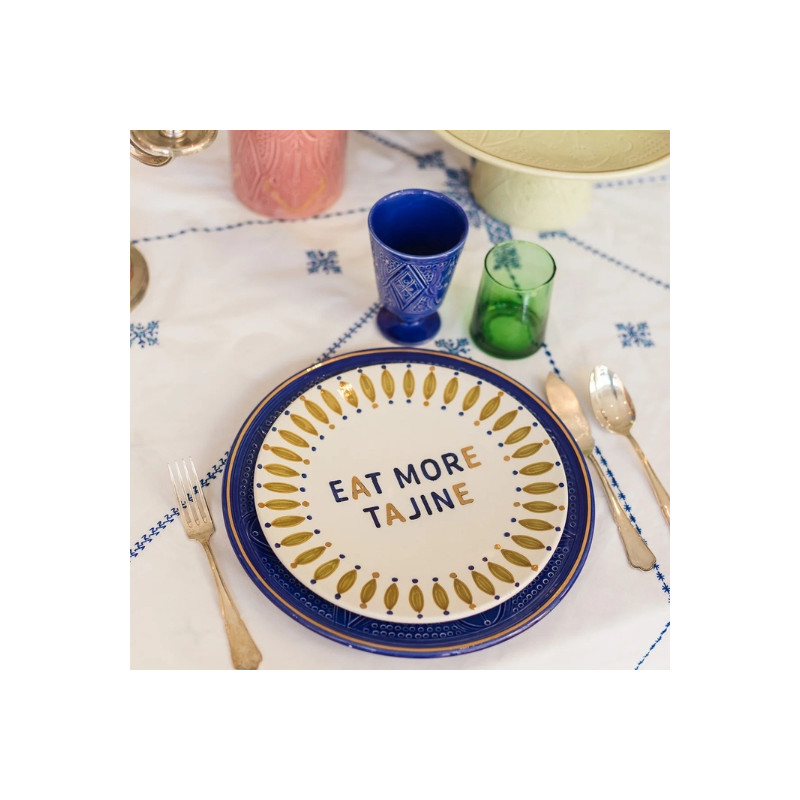 Découvrez l’harmonie parfaite entre tradition et modernité avec l'assiette "eat more tajine", une pièce unique issue de l’artisanat marocain. Inspirée des formes emblématiques de la vaisselle traditionnelle, elle se distingue par un léger bourrelet délicatement travaillé, apportant du caractère tout en offrant une prise en main confortable. Une assiette au charme authentique, faite pour sublimer vos tables du quotidien comme des grandes occasions.