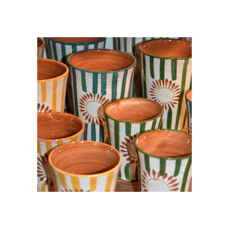 La tasse expresso Rayures Jaunes de Soleil Essaouira est une pièce en argile façonnée à la main au Maroc. Lumineuse et authentique, elle apporte une touche artisanale à vos pauses café.