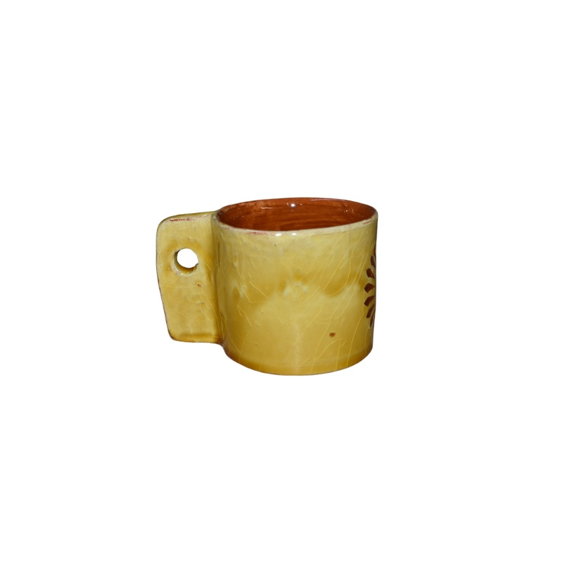 La tasse expresso unie jaune de Soleil Essaouira est une pièce artisanale lumineuse, parfaite pour sublimer vos pauses café. Réalisée en argile selon les techniques traditionnelles de la poterie marocaine, elle est entièrement façonnée à la main au Maroc. Chaque tasse est unique, avec de légères variations qui témoignent de l’authenticité du travail artisanal.