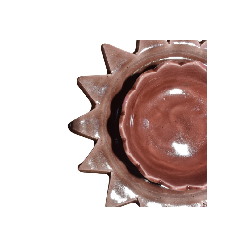 Sa teinte rose délicate, associée à sa forme inspirée du soleil, apporte une touche chaleureuse et élégante à la table. Idéal pour le petit-déjeuner, des desserts ou des petites préparations, il allie charme et fonctionnalité au quotidien. Une pièce douce et lumineuse qui sublime chaque instant.