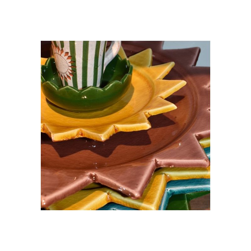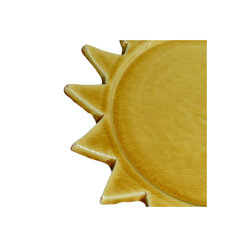 Sa forme inspirée du soleil et sa teinte jaune éclatante apportent une touche chaleureuse et joyeuse à votre table. Idéale pour présenter desserts, fruits ou petites douceurs, elle allie esthétique et fonctionnalité avec simplicité. Une création solaire qui illumine chaque instant.