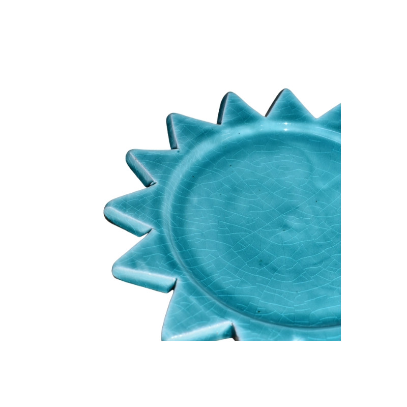 Sa forme rayonnante inspirée du soleil, associée à une teinte turquoise vibrante, évoque les nuances marines et illumine vos présentations. Idéale pour les desserts, fruits ou petites douceurs, elle allie esthétique et fonctionnalité avec simplicité. Une création pleine de vie qui sublime chaque instant.