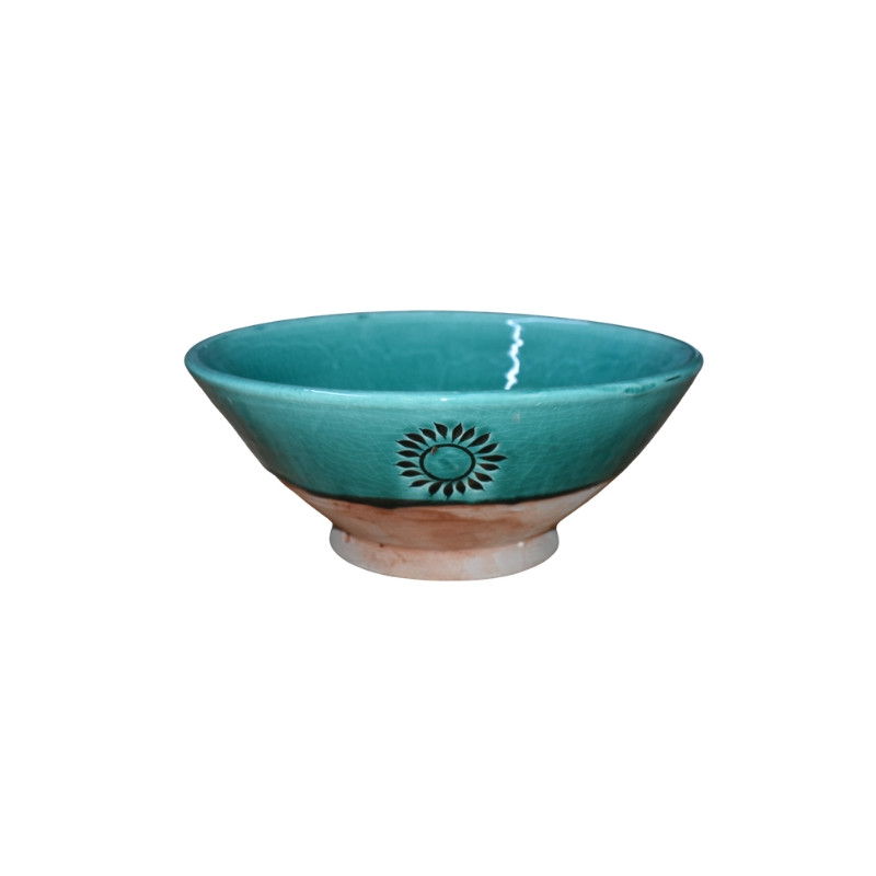 Le saladier Soleil turquoise de Soleil Essaouira est une pièce artisanale qui évoque immédiatement l’évasion et la fraîcheur. Réalisé en argile, il met en valeur tout le savoir-faire de la poterie traditionnelle marocaine. Chaque saladier est façonné à la main au Maroc, rendant chaque pièce unique avec ses légères variations et ses nuances subtiles.