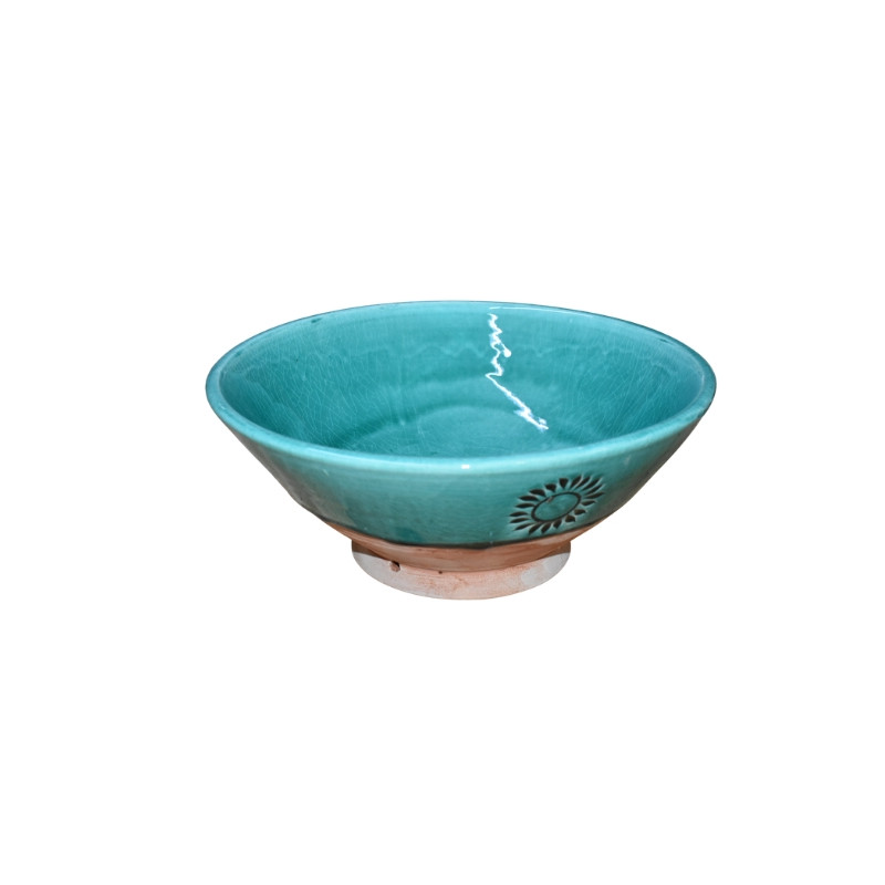 Sa teinte turquoise, lumineuse et apaisante, rappelle les paysages marins et apporte une touche de fraîcheur à la table. Parfait pour servir des salades, des fruits ou des plats à partager, il se distingue autant par son esthétique que par son authenticité. Une pièce à la fois utile et décorative, qui incarne un artisanat vivant et sincère.
