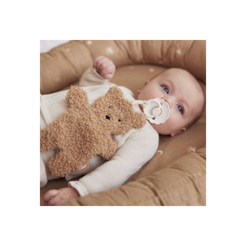 Cet attache tétine tout doux en forme d'ours de la marque Jollein est parfait pour empêcher de perdre la tétine de votre bébé ou qu'elle tombe par terre. C'est l'accessoire indispensable si vous utilisez des tétines. Il s'adapte à tous les modèles de tétines. Ici en coloris biscuit.