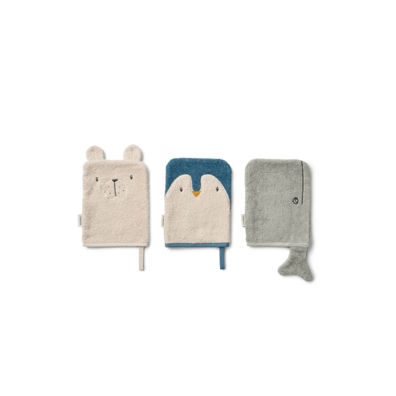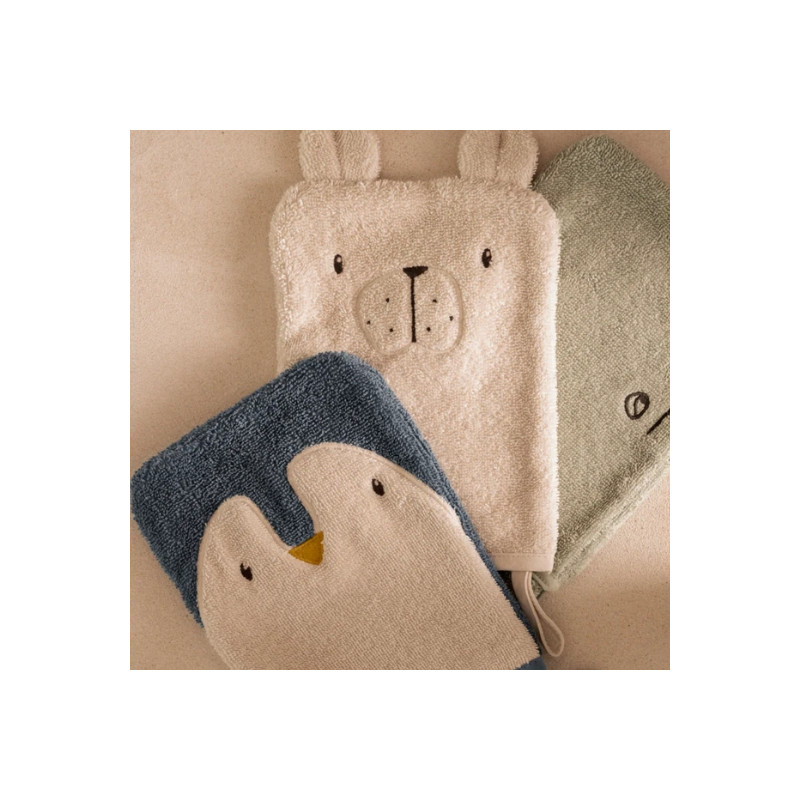 En coton bio certifié GOTS, les gants de toilette SYLVESTER de Liewood sont doux, absorbants et ludiques grâce à leurs motifs animaux. Pratiques à enfiler, ils facilitent le lavage et se transforment en marionnettes pour rendre le bain encore plus amusant.