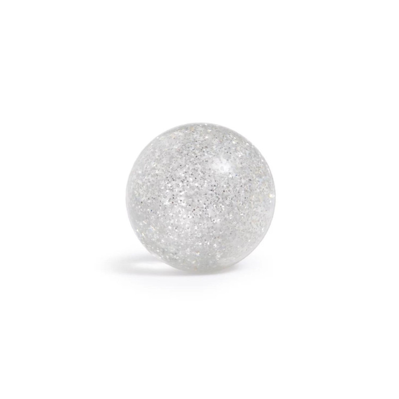 On craque ici pour ce petit modèle de Balle rebondissante en caoutchouc avec ses paillettes argentées !