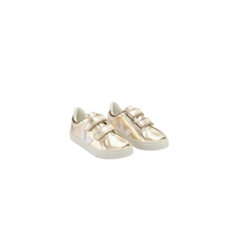 Préparez-vous à illuminer les journées de vos petits avec cette paire de sneakers Veja qui brille comme un rayon de soleil ! Oui, vous l'avez bien vue, cette beauté dorée est là pour faire tourner toutes les têtes sur son passage.