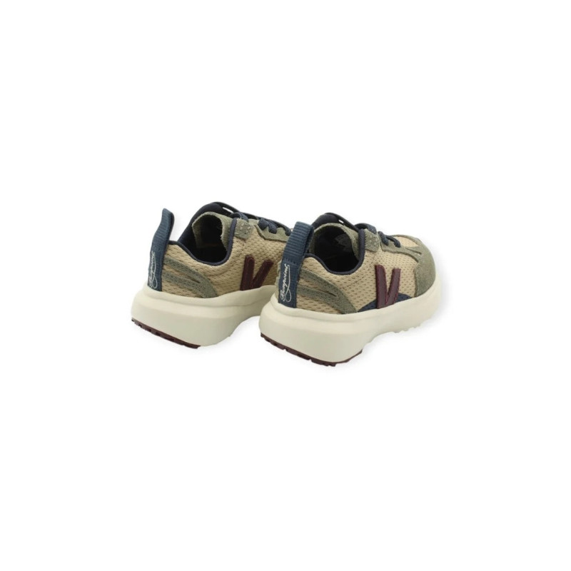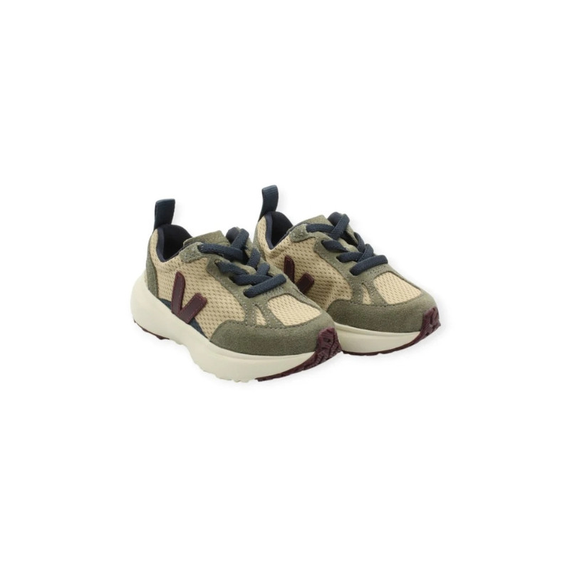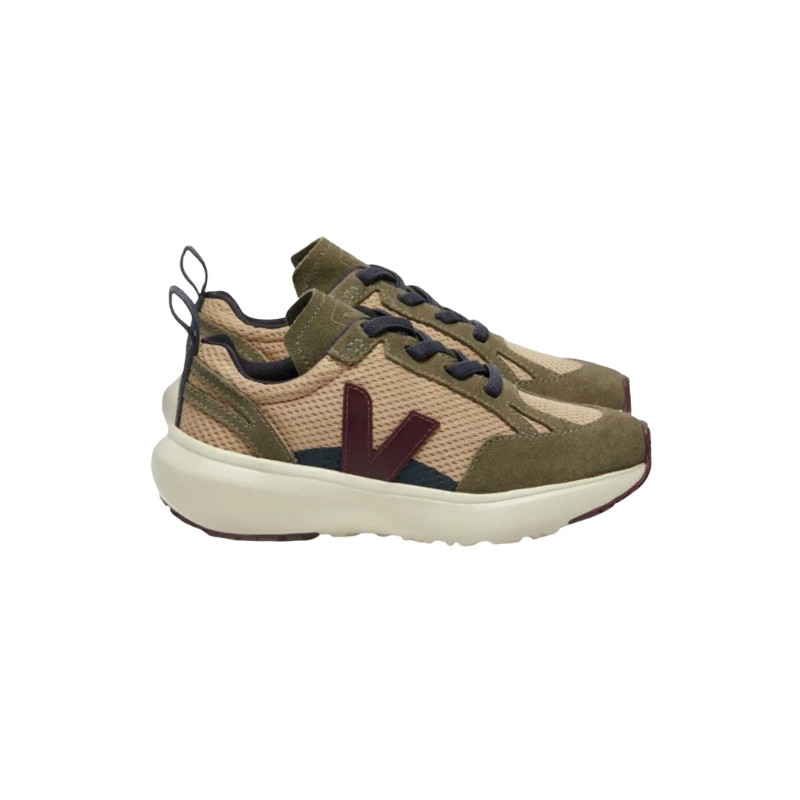 Les baskets small canary sahara amarante de la marque Veja en collaboration avec Bonpoint allie style, confort et éco-responsabilité. Conçue spécialement pour les enfants, elle séduit par son design sportif, ses touches de daim vert olive et son logo bordeaux emblématique. Une chaussure légère et respirante, idéale pour le quotidien.