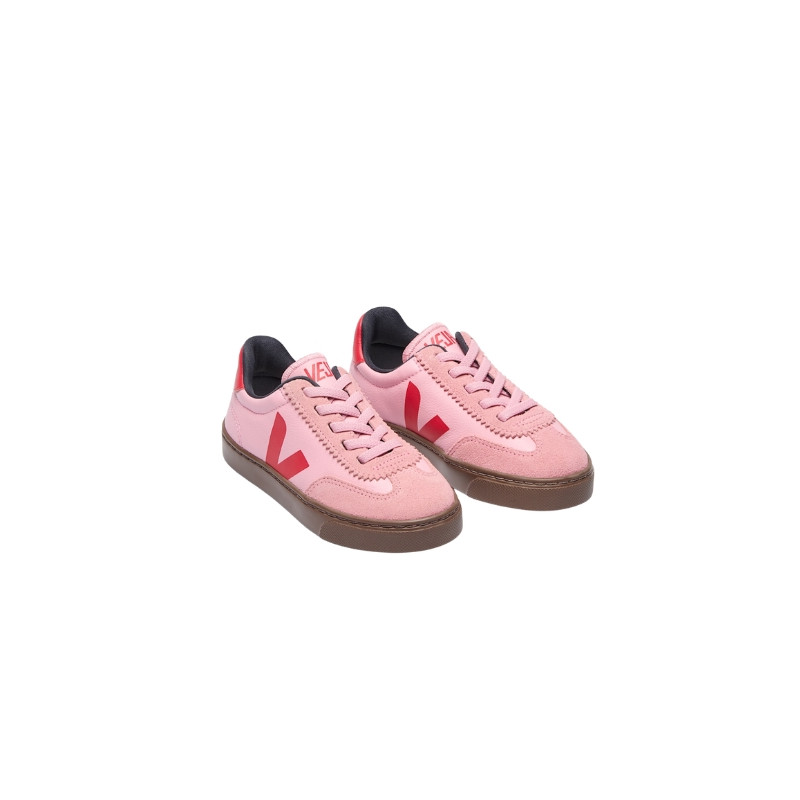 Les baskets Volley Veja pour bébés associent cuir souple, détails en daim et semelle en caoutchouc. Inspirées des années 80, elles offrent confort, résistance et style au quotidien.