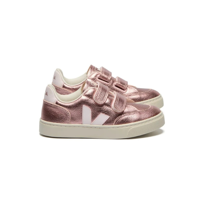 Craquez pour les baskets nacre lassi de la marque Veja, un modèle à la fois tendance et confortable. Conçues en cuir souple avec détails emblématiques en V, elles assurent un maintien optimal grâce à leurs scratchs pratiques. Un design éclatant et durable, idéal pour accompagner les enfants au quotidien avec style.