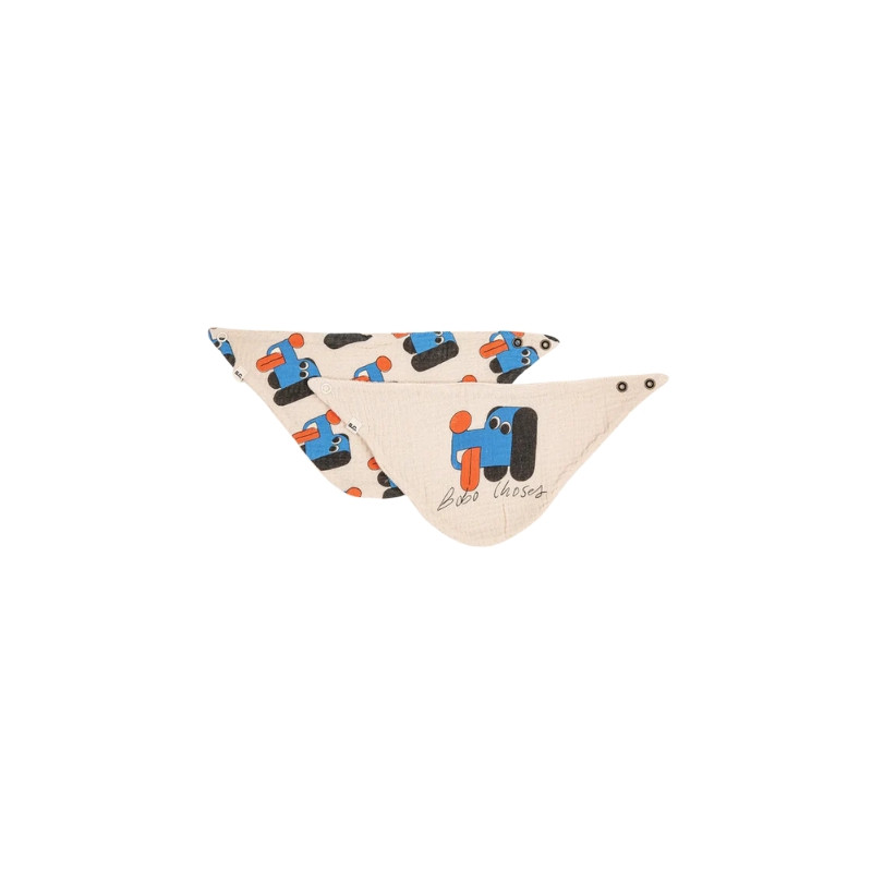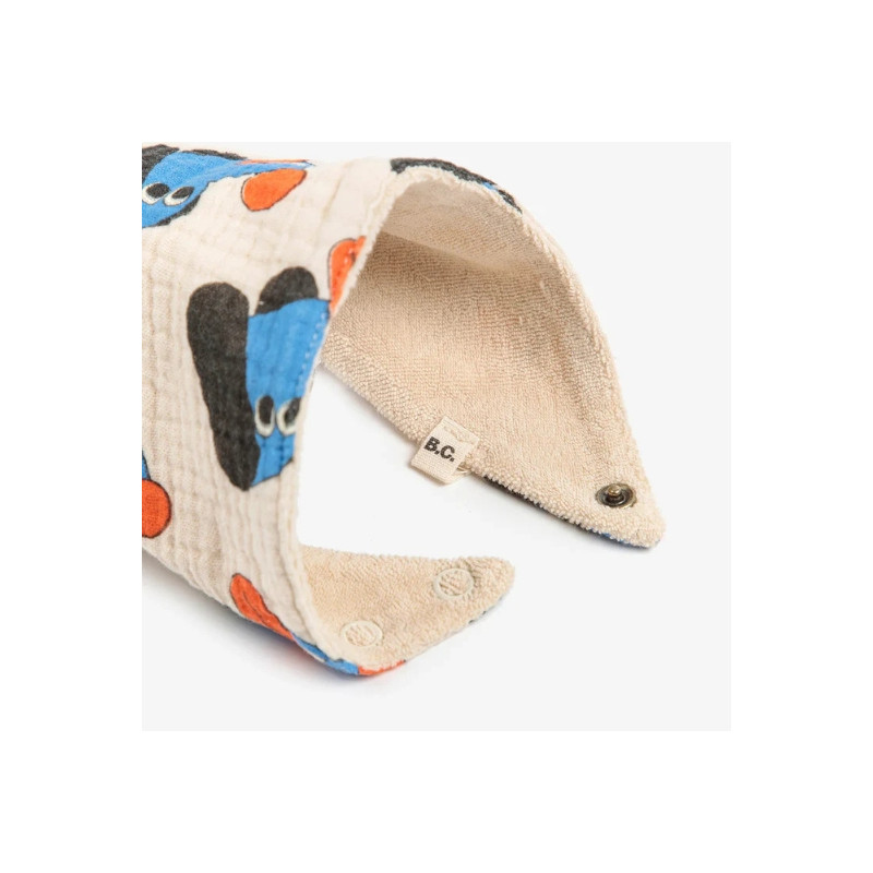 Lot de bavoirs BOBO CHOSES en coton bio, imprimés ludiques et fermeture à pression. Fabriqués en Espagne.
