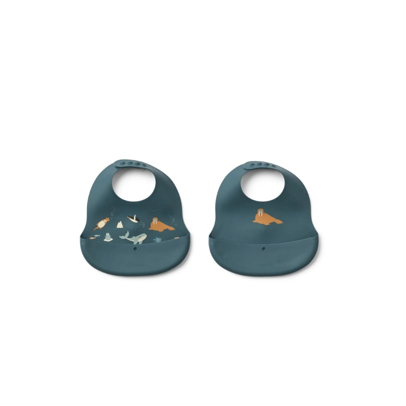 Liewood : Lot de 2 bavoirs Ember - artic sea / ocean view