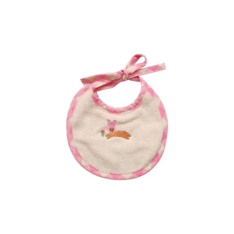Mignon et pratique, le bavoir rond Le Petit Souk protège les vêtements de bébé tout en douceur. En coton éponge absorbant, il se ferme facilement avec un lien à nouer et séduit par son motif lapin rose plein de tendresse.