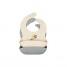 Fabriqué en silicone souple et résistant, il offre un grand confort d’utilisation tout en étant facile à nettoyer. Il passe au lave-vaisselle jusqu’à 100 °C et résiste à des températures extrêmes, de -40 °C à 230 °C, garantissant une excellente durabilité. Conforme aux normes européennes relatives au contact alimentaire, ce bavoir assure une utilisation sûre au quotidien pour les enfants.