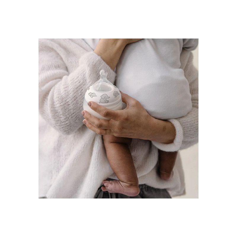 Le biberon ELHÉE 150 ml motif éléphant est idéal dès la naissance, alliant douceur, sécurité et technologie anti-colique performante.