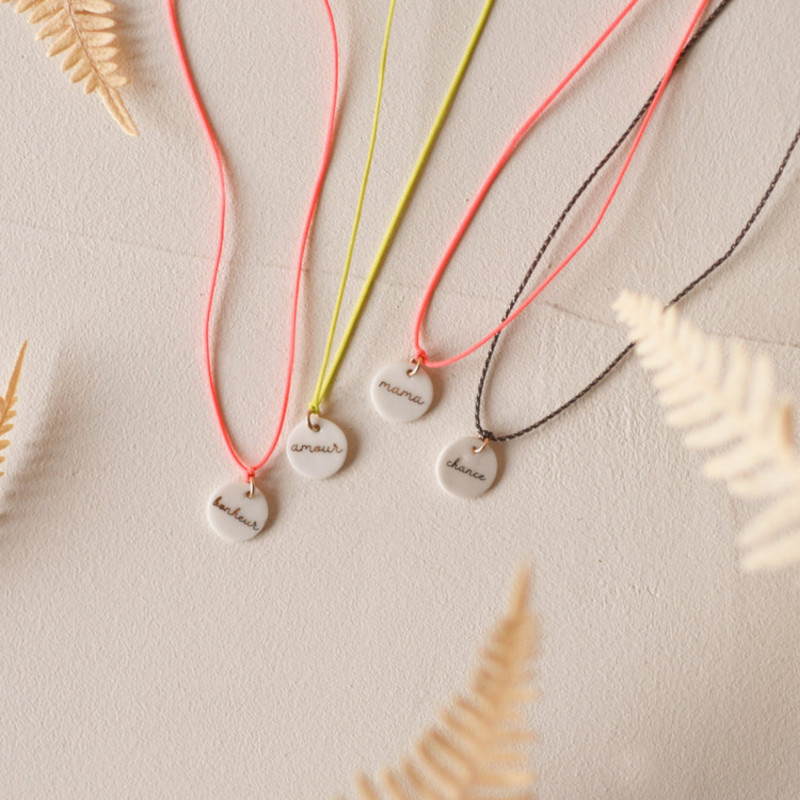 - Médaillon en porcelaine blanche avec inscription dorée “mama”