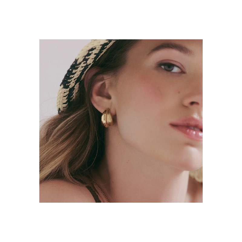 Les créoles Claudia signé Louise Damas, c’est le parfait mariage de volume et de caractère. Avec leur texture striée et leurs surfaces lisses, elles captent la lumière sous tous les angles, offrant un contraste fascinant entre ombre et éclat. Un bijou aussi lumineux que sculptural pour faire ressortir toute votre personnalité.