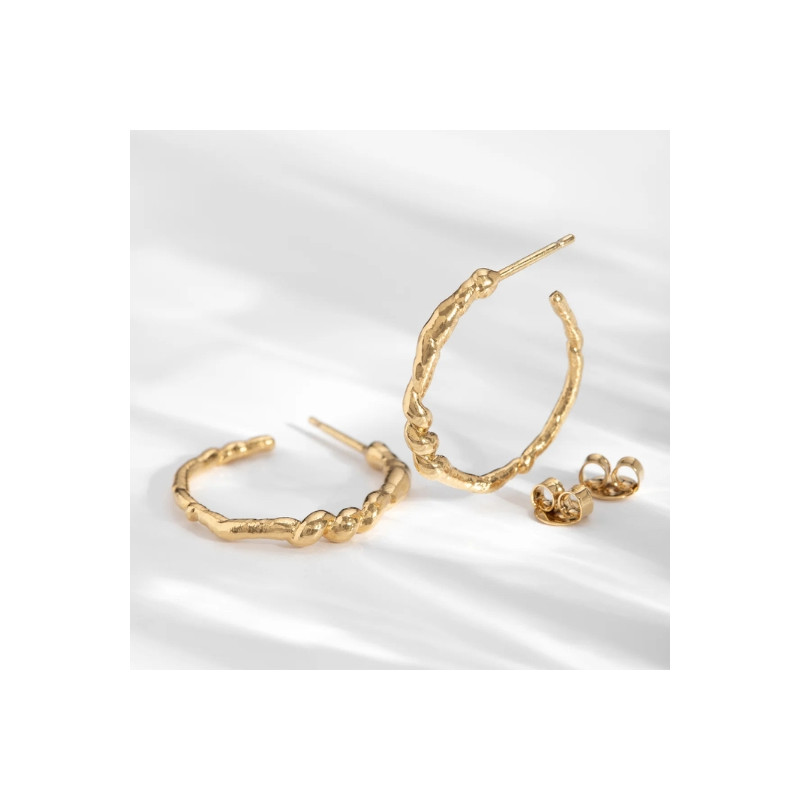 Les créoles Iris signé Louise Damas, c’est l’équilibre parfait entre simplicité et originalité. Leur texture irrégulière et douce, qui rappelle une liane s’enroulant doucement, apporte une touche naturelle et élégante à votre look. Un design minimaliste mais audacieux qui saura attirer tous les regards.