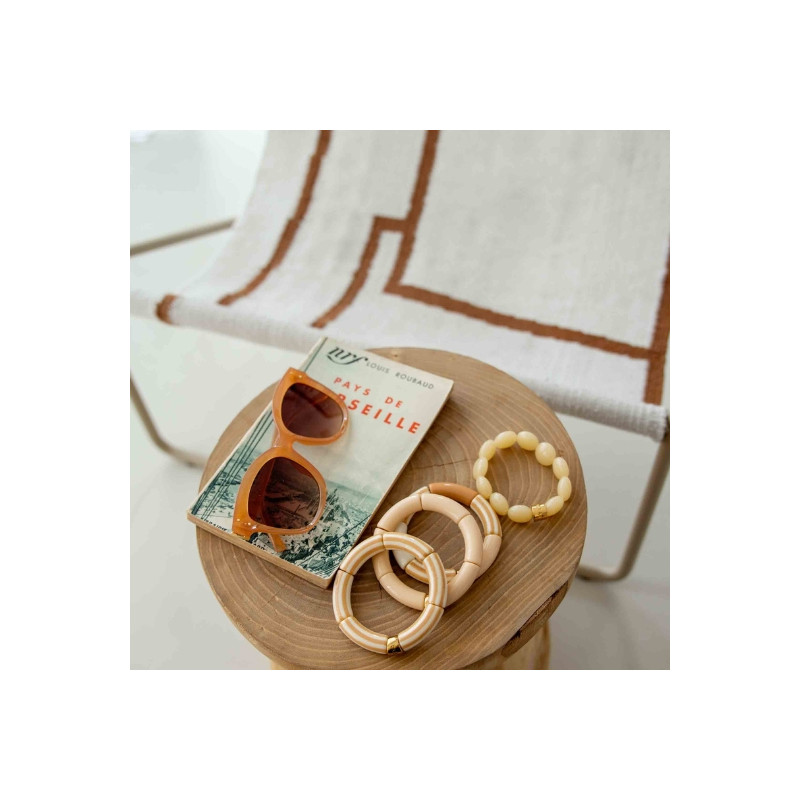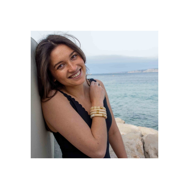 Avec ses tons doux et intemporels, le bracelet Riviera Beige est un essentiel de la collection. Il apporte une touche d’élégance à toutes vos tenues, été comme hiver, et s’harmonise parfaitement avec du blanc, du jean, de l’écru, du kaki ou du beige. Composé de 6 perles en acrylique ou résine de qualité et d’une perle signature PARABAYA en acier doré à l’or fin, il est monté sur un lien élastique résistant. À porter seul, en duo ou en trio pour sublimer les combinaisons de couleurs.