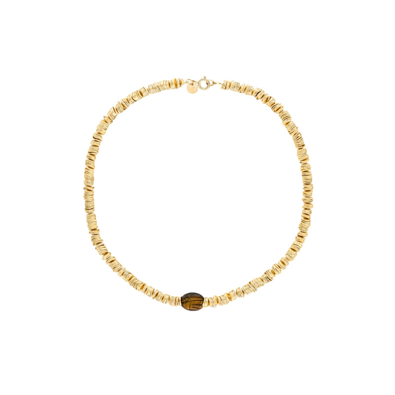 | MODÈLE | Collier Disques Dorés Scarabee Oeil De Tigre |